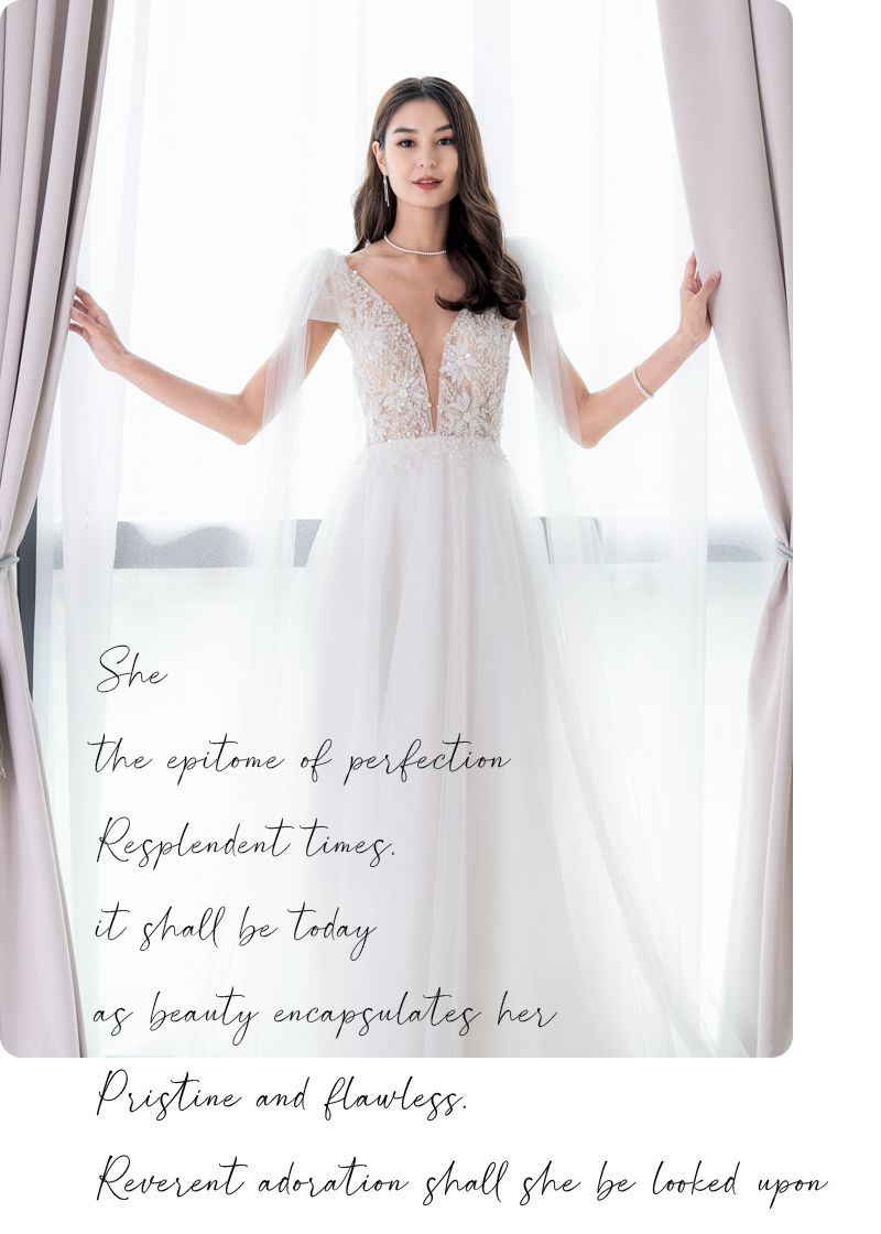 Our gowns are exclusive and only available through our studio, crafted to ensure you stand out as a one-of-a-kind bride.